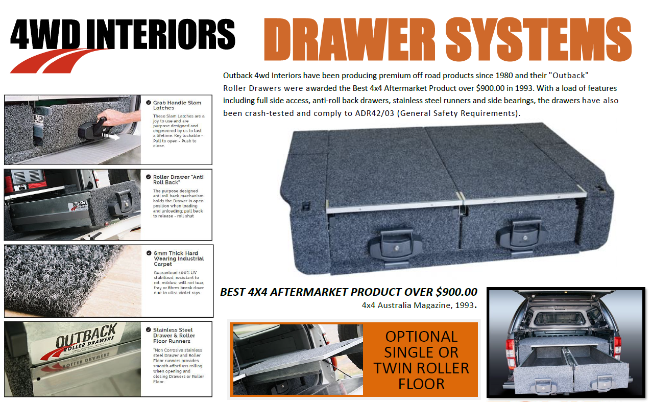Origination in 1980, 4WD Interiors has a reputation for making quality, durable products using the highest standards of design, manufacturing methods and materials. They have won a number of awards including Best Aftermarket Product Award from 4×4 Australia in 2000.