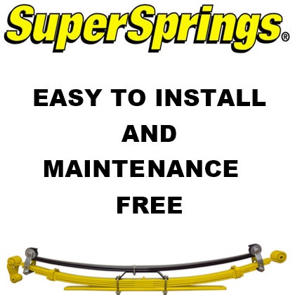 The combination of their tapered blade and pivoting, self-adjusting, dual roller systems assist the SuperSprings to work on an as-needed basis. The installed springs are under nominal tension even when the vehicle is unloaded, to avoid any rattles.